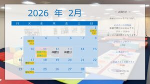 2026年2月のスケジュールをお知らせいたします。