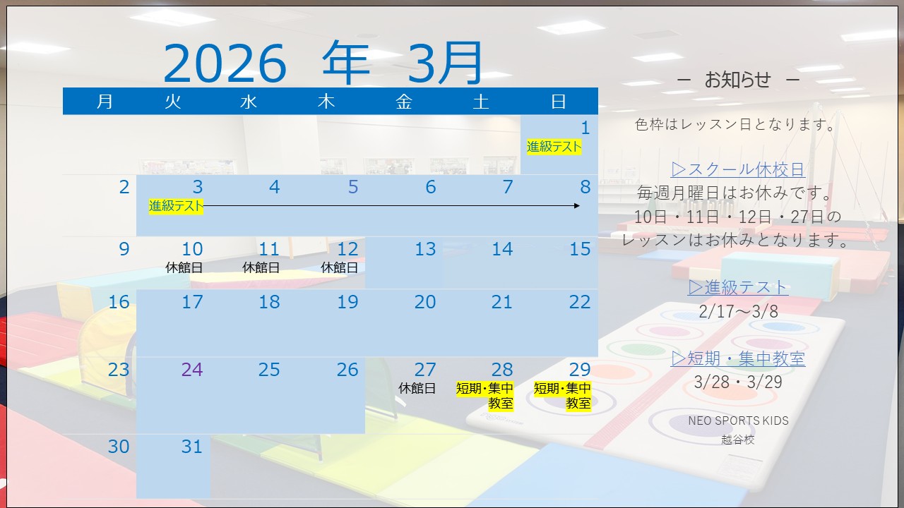 3月のスケジュールをお知らせいたします。
