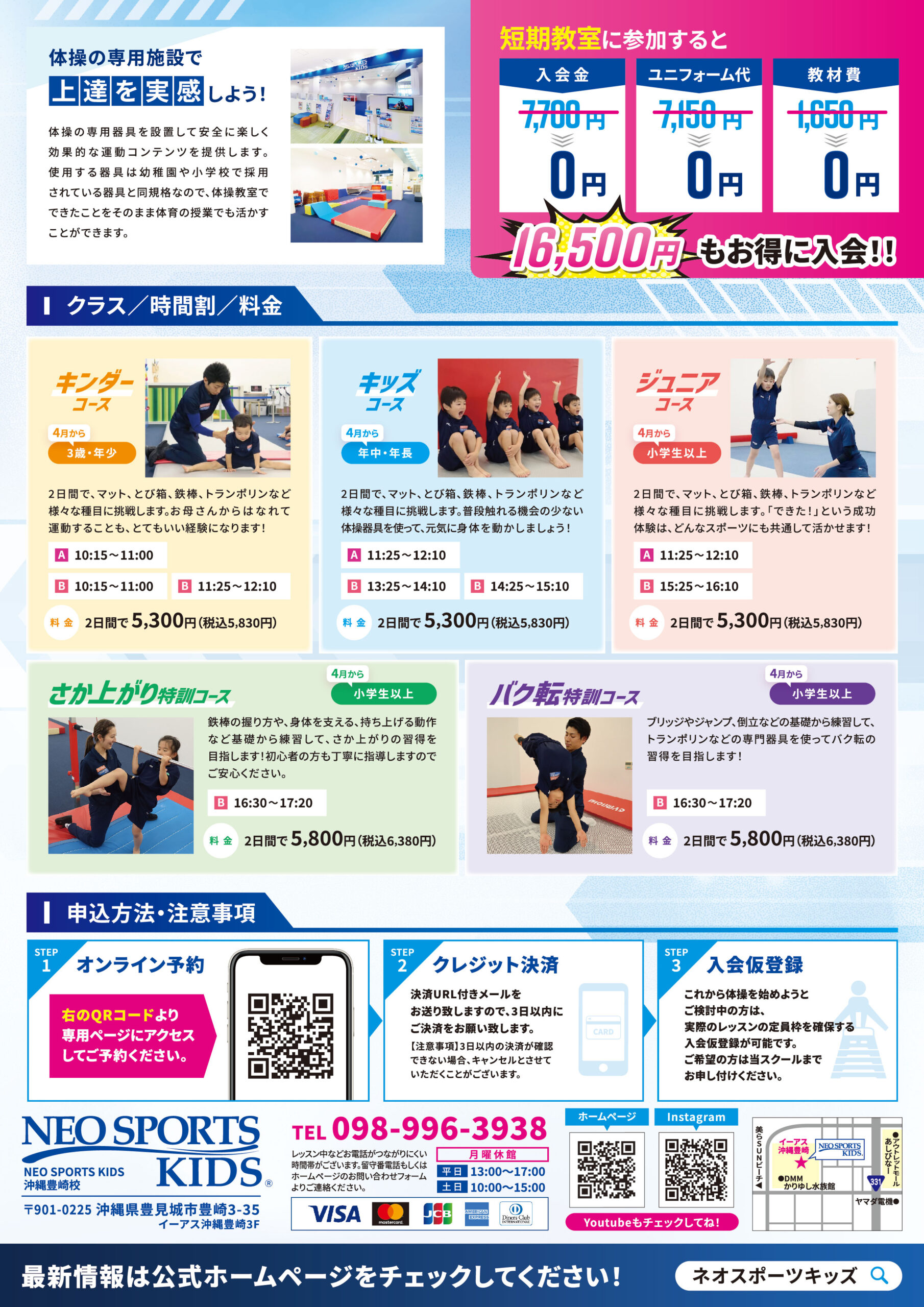 今年も、お子さまの学年やチャレンジしたい技に合わせて選べる全5クラスをご用意しました!!🙌