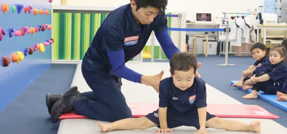 2日間で、マット、とび箱、鉄棒、トランポリンなど様々な種目に挑戦します。お母さんからはなれて運動することも、とても良い経験になりますね!